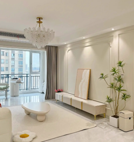 配色上,建議 “大面積主色 + 小面積撞色”。全屋大面積用奶油主色,比如墻面刷奶白色,頂面選稍淺一度的同色系,避免 “頭重腳輕”;局部可以用低飽和色系點(diǎn)綴,比如臥室背景墻刷淺奶茶色,兒童房加一點(diǎn)淡粉色,既能豐富層次,又不會破壞整體溫柔感。記住,撞色面積別超過墻面的 10%,否則會打亂奶油風(fēng)的和諧感。